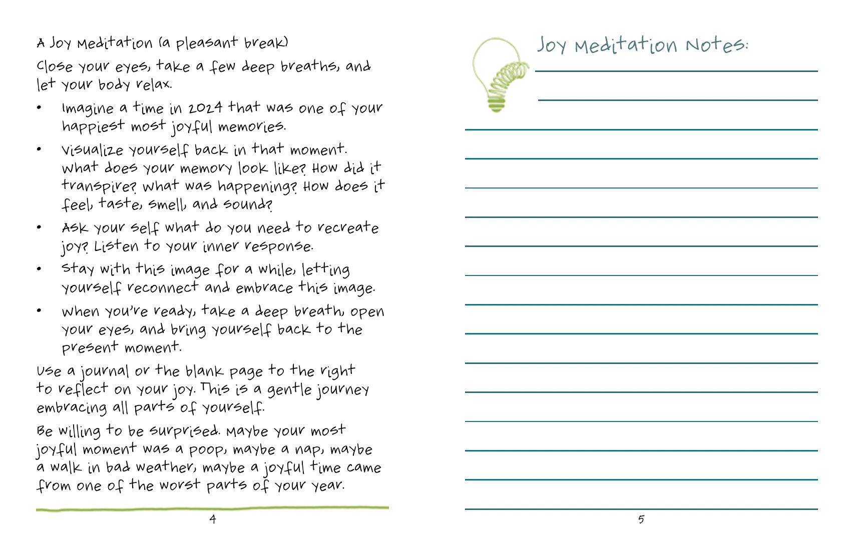 I am thrilled to release the Reflect Your Way: into a new year issue. Pages 4 and 5 are pictured below.